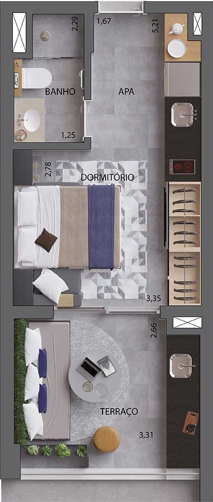 Studios e apartamentos modernos: de 30 m² a 113 m², com plantas bem resolvidas e opções com vaga.
