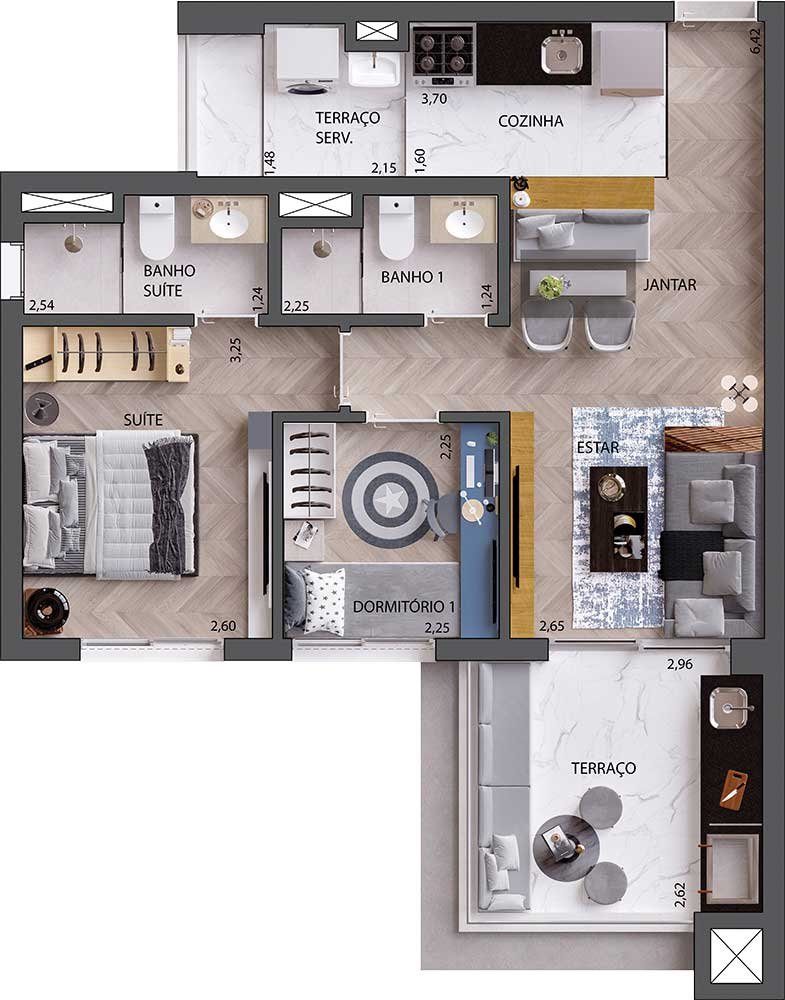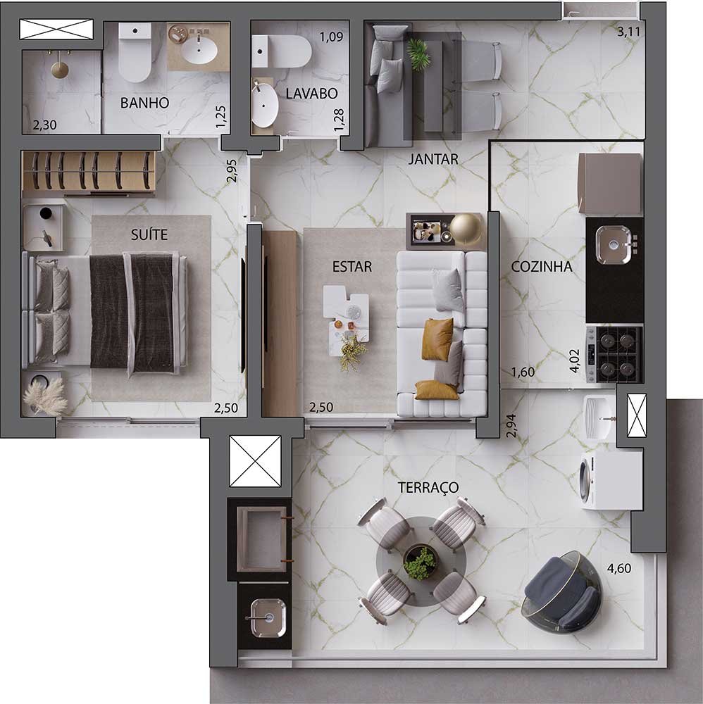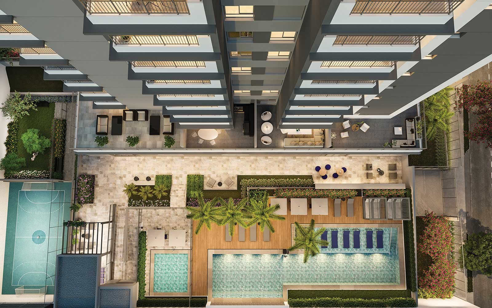 Lazer completo: piscina, salão de festas, brinquedoteca, quadra, coworking, pet place e muito mais.